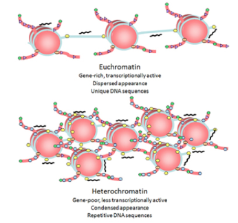 What are the 2 different forms of chromatin and what are some of the characteristics of both types?