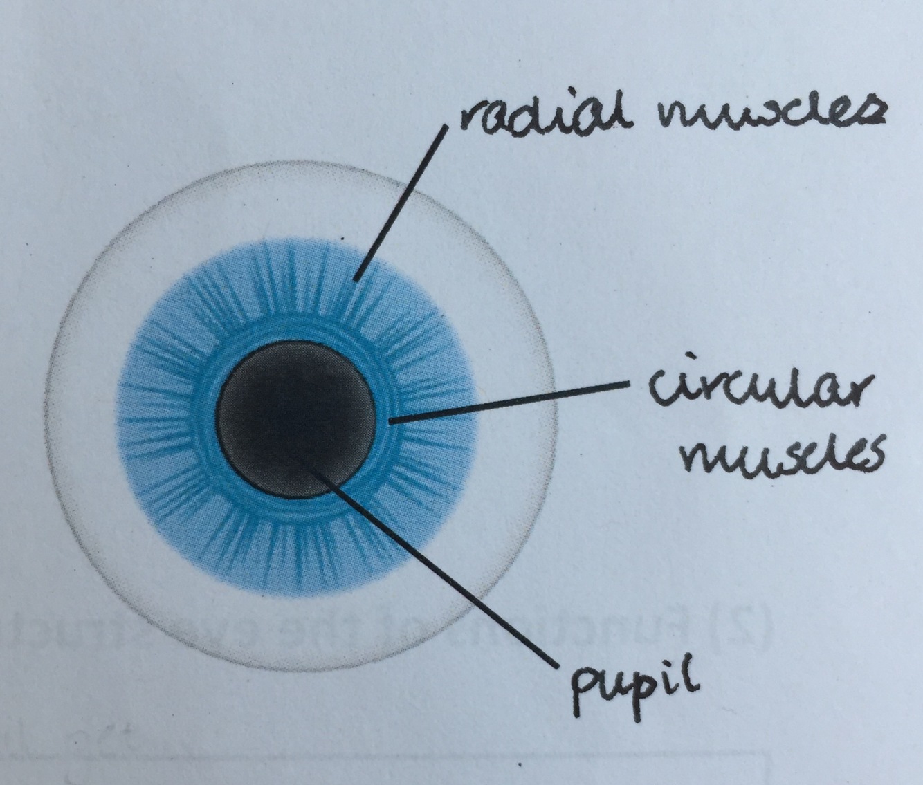 when the pupil contracts (in bright light), the circular muscles contracted and the radial muscles are relaxed