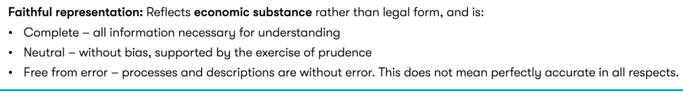 Helps to ensure that they provide relevant information that faithfully represents and entities assets, liabilities, income and expenses.