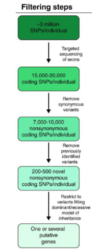 Describe the process of candidate gene filtering for whole exome sequencing?
