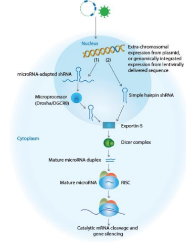During RNAi mediated gene knockdown what are the two ways in which shRNA can be integrated into the host cell?