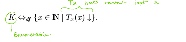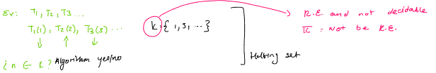 Given an emuration T0, T1, T2, … of TM, define the follow set of natural numbers: K