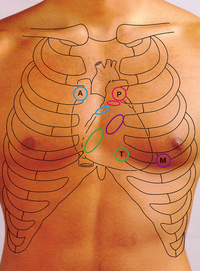 Where do you listen to heart sounds?