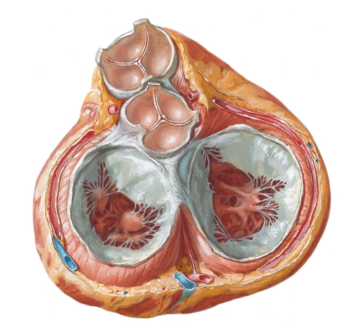View of the left atrium and ventricle (sectioned with mitral valve cut away)