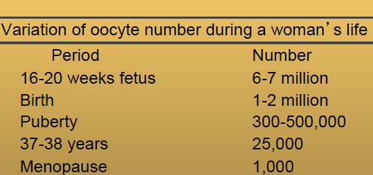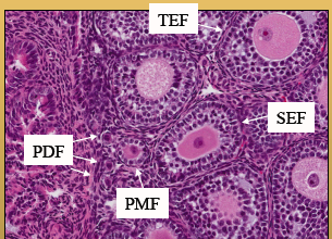 Premordial follicles- consisting of a small primary oocyte with very little cytoplasm surrounded by flat granulosa cells