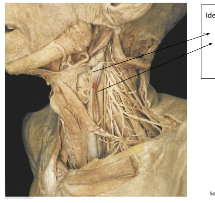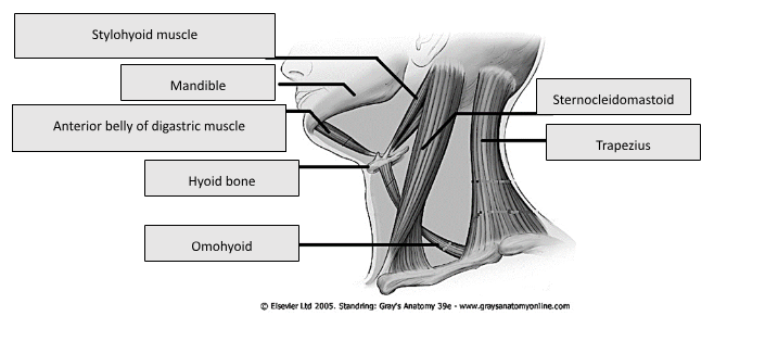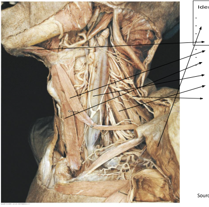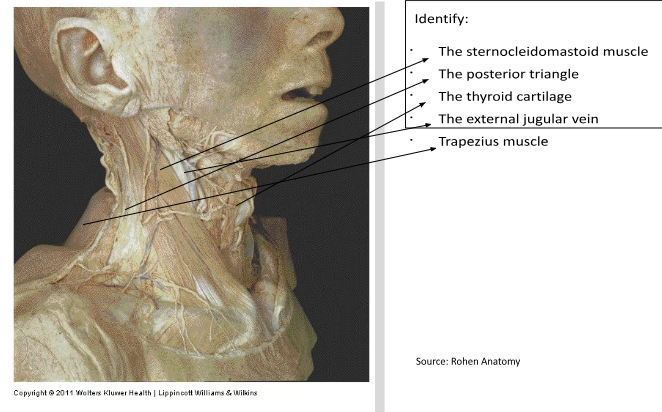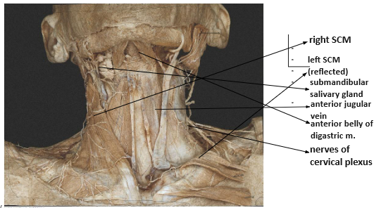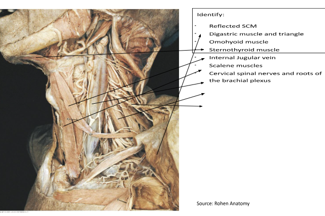 attaches to sternum and clavicle and mastoid process of temporal bone.