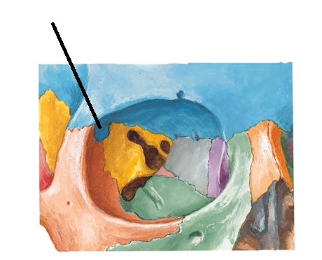 located in the superolateral part of the orbital plate of frontal bone. The lacrimal gland is located here