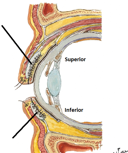 Superior and inferior. connective tissue plates – form the skeleton of the lids
