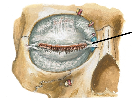 Located at the optic canal in the lesser wing of the sphenoid bone