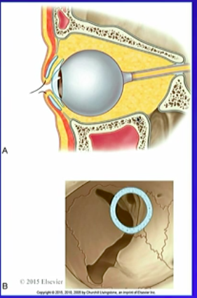 Point of origin for all 4 rectus muscles, and many nerves run within this structire.