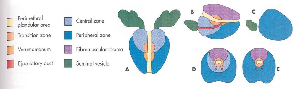 What are the four zones of the prostate?