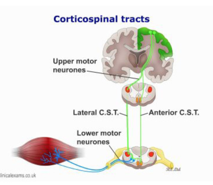 lesion just beyond the decussation at the pyramids prior to spinal chord entry