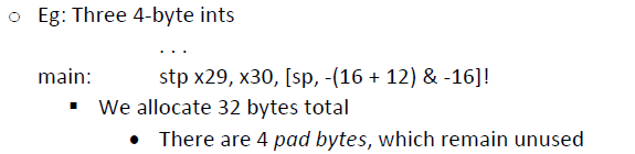 The address in SP must be evenly divisible by 16 May need to allocate more space than actually needed