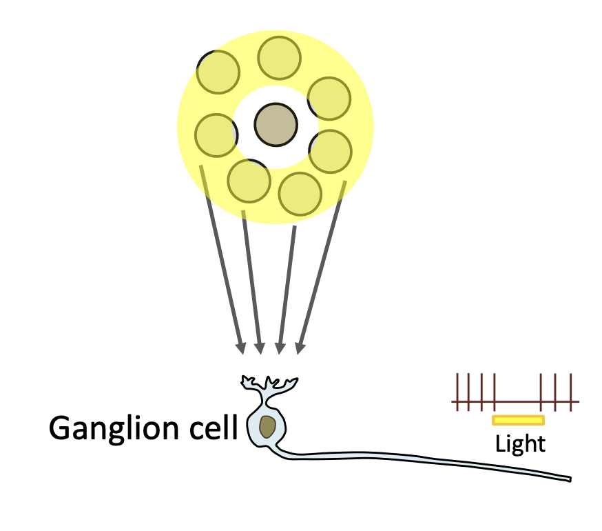 When we shine light over all the photoreceptors (central and surrounding photoreceptors)…