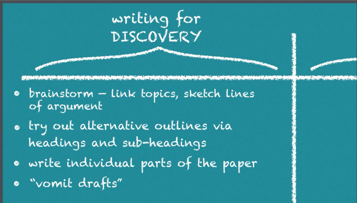 Give examples of “writing for discovery” activities.