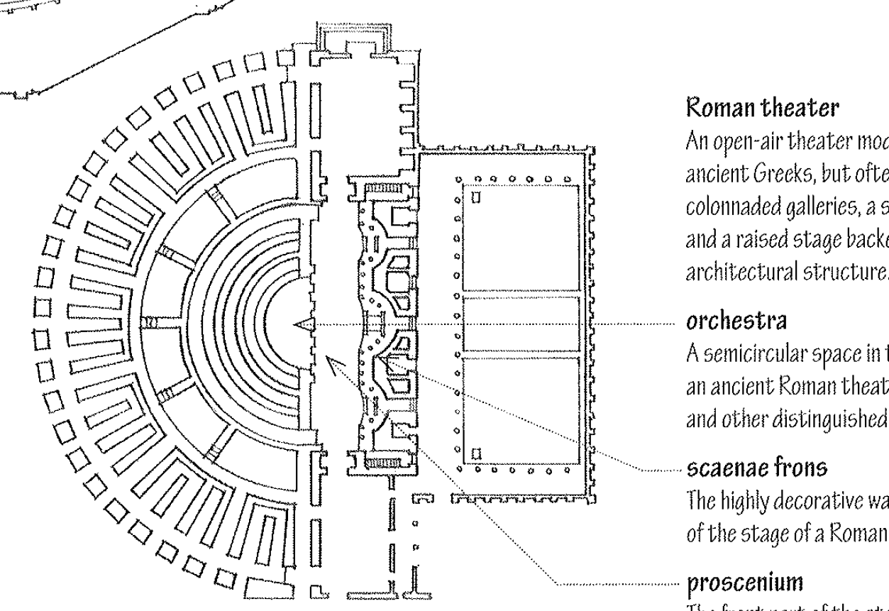 An open-air theater modeled upon that of the ancient Greeks, but often built on level ground with colonnaded galleries, a semicircular orchestra, and a raised stage backed by an elaborate architectural structure.