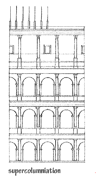 The placing of one order of columns above another, usually with the more elaborate orders at the top.