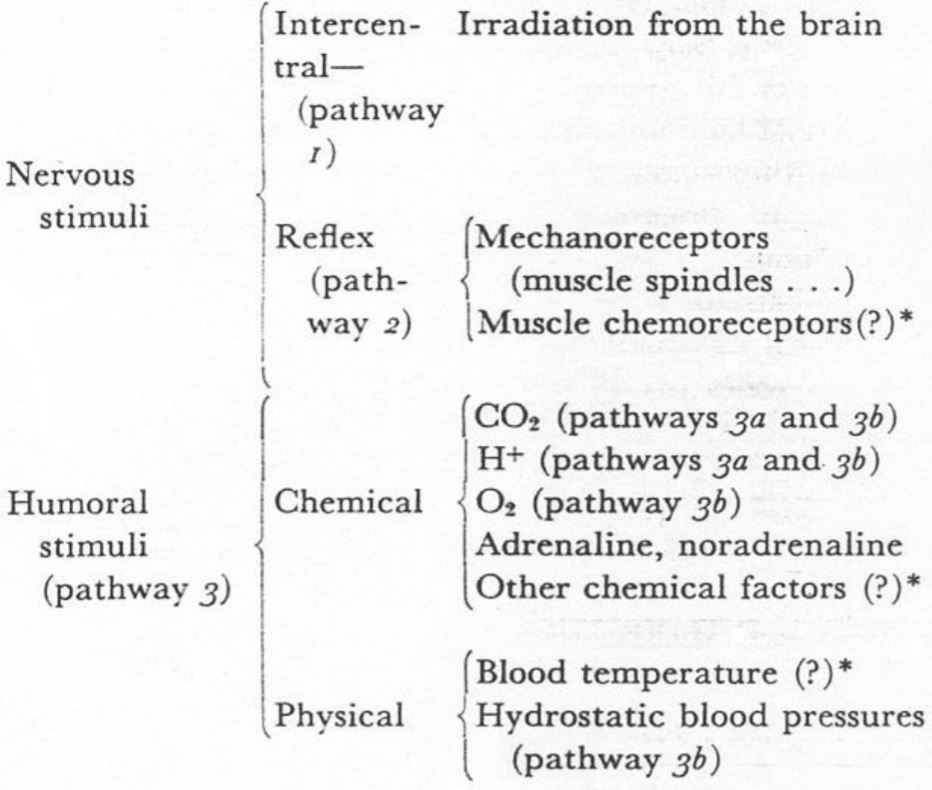 Give a summary of the main respiratory stimuli (i.e. factors that affect breathing).