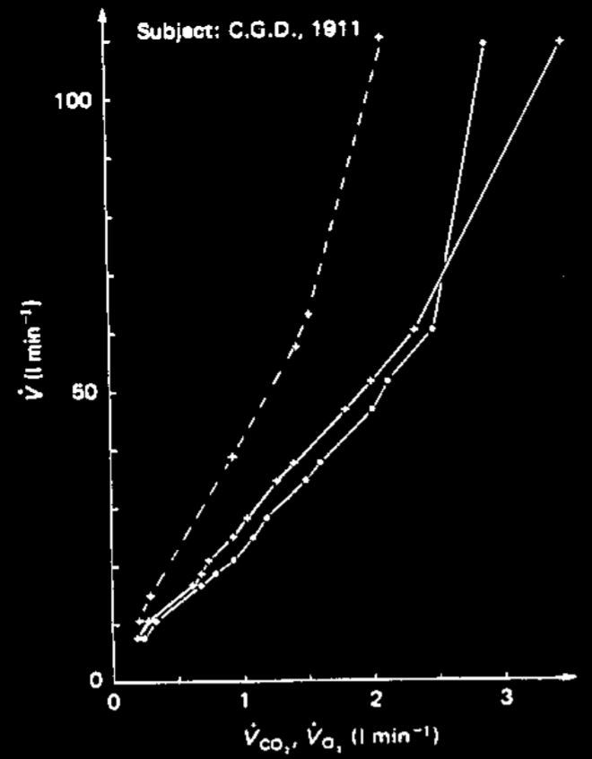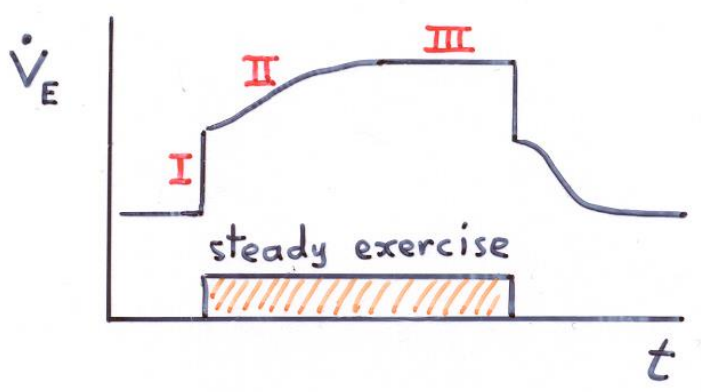 Give some experimental evidence for how ventilation changes with exercise.