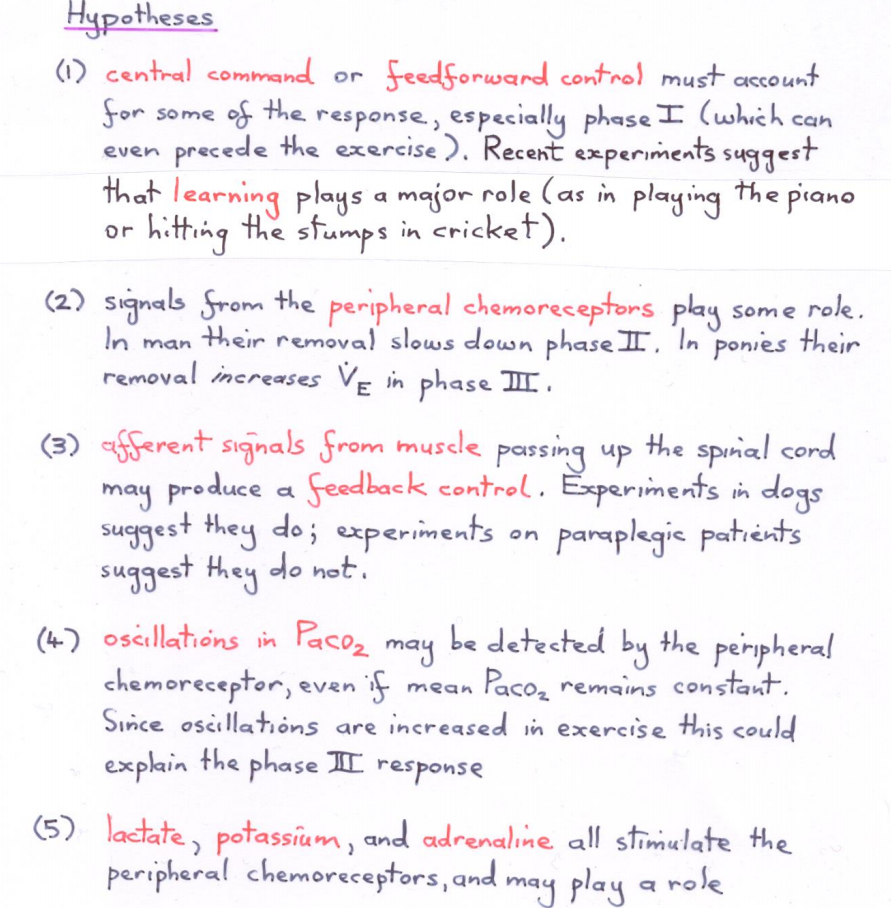 It seems that the ventilatory response to exercise includes a lot of redundancy. This means that removing one component (e.g. the muscle feedback) is not sufficient to lose the response, but if we remove all other components, then removing the last component will indeed lead to loss of the response.