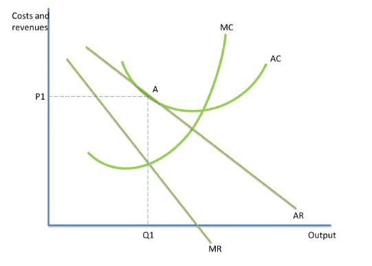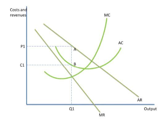 In the short run, firms profit maximise at the point MC = MR. The area P1C1AB represents the supernormal profits that firms in a monopolistically competitive market earn in the short run.