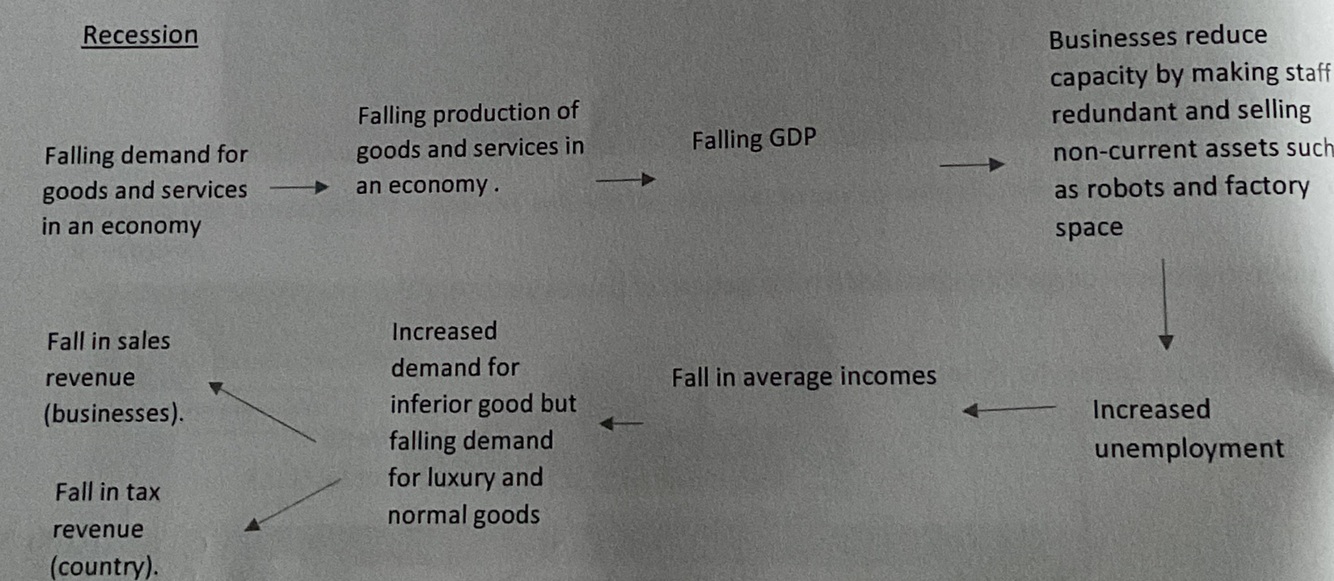 Give a LOA for the drawback of a recession within the business cycle (9)