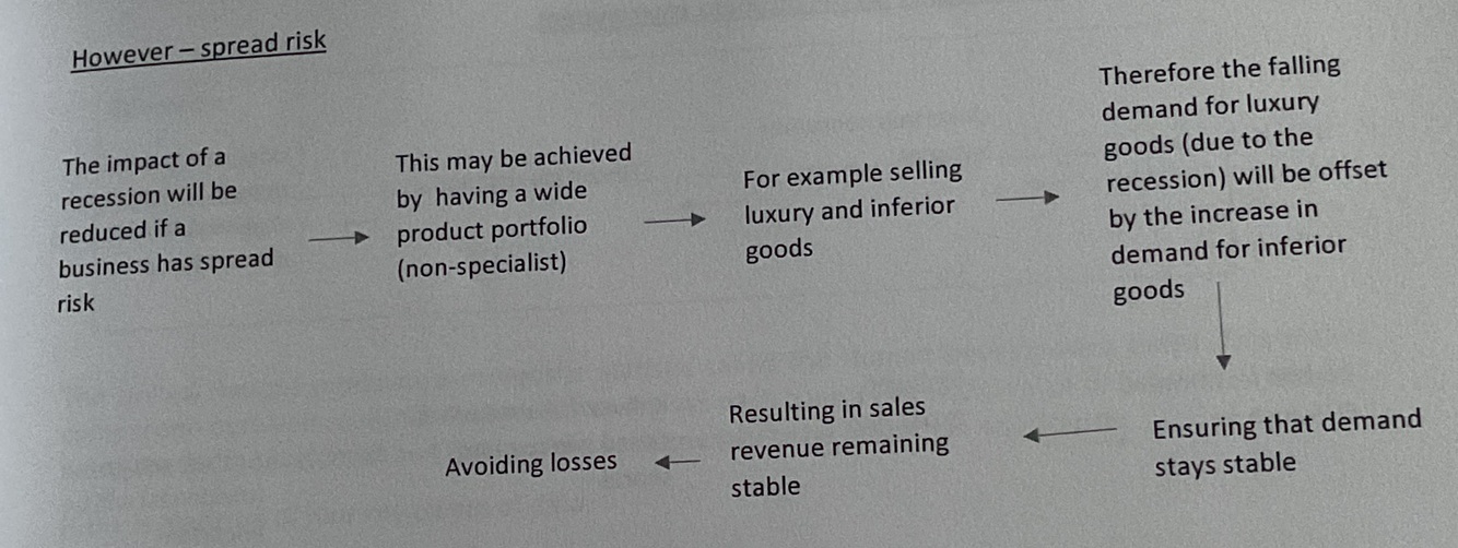 Give a LOA for the benefit of a recession linked to spreading risk (7)