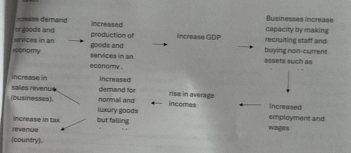 -increase in spare capacity and increased unemployment as businesses cut back and reduce stock