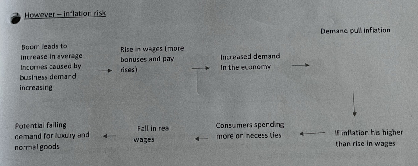 Give a LOA for the drawback of a boom linked to inflation risk (8)