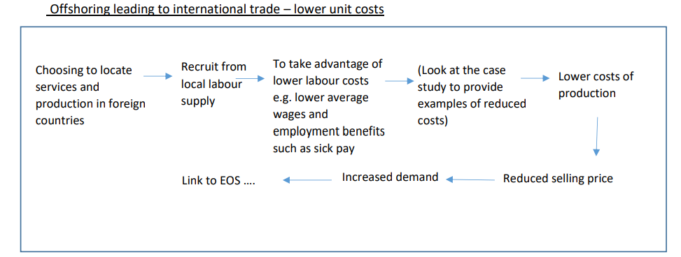 Offshoring leading to international trade – lower unit costs