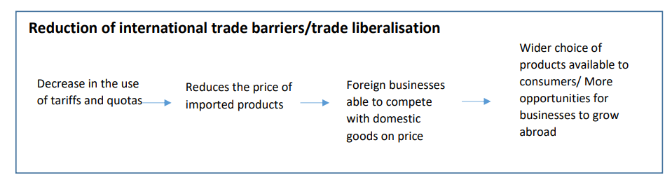 Reduction of international trade barriers/trade liberalisation