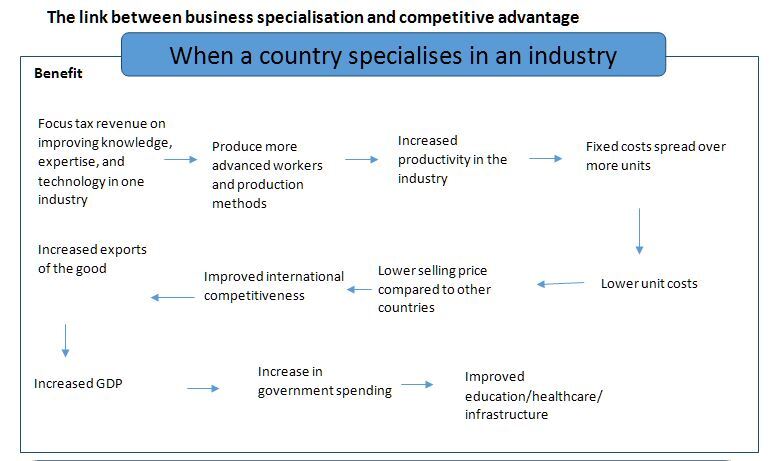 Benefit of when a country specialises in an industry