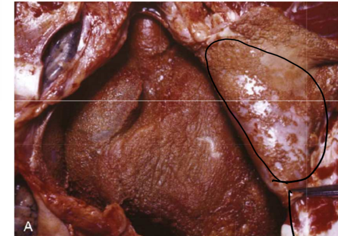 sur la photo tapissé d’exsudat granuleux ( fibrine)