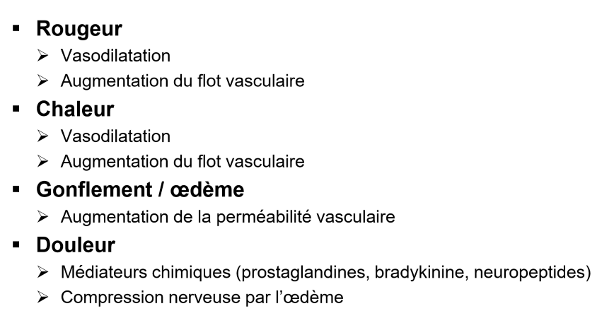 DOnne 4 signes clinique de l’inflammation et les processus dans le corps qui mènent à ces signes cliniques