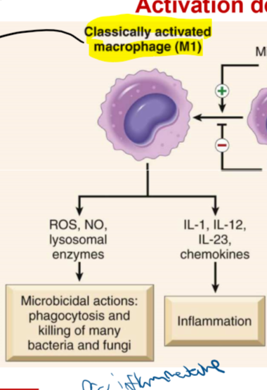 des macrophaques activés classiquement vont produire quoi et ce qui produise ou augmente menentn à quoi?