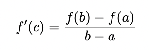 Conclusion: There exists a number c in (a, b) with a tangent line parallel to the line between a-b.