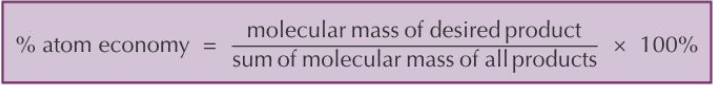 (a) the concept of amount of substance in performing calculations involving atom economy; the relationship between atom economy and the efficient use of atoms in a reaction