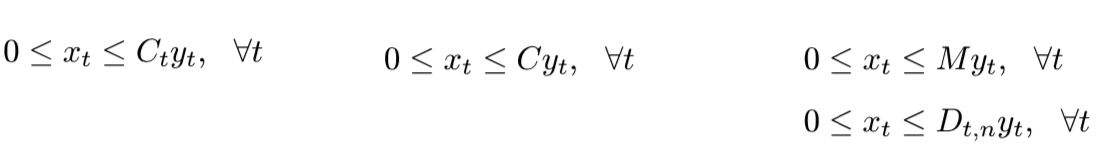 Setup cost in incurred in each period where there is positive production. There is a start up cost in period t if there is no setup in period t-1 and there is a setup in period t.