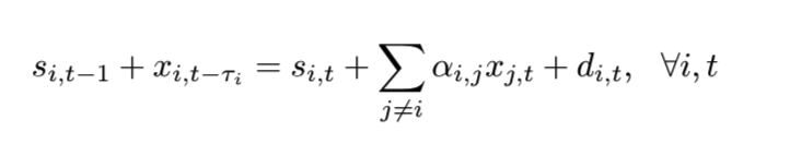 In some applications, time periods are small so that if production of product i is started in period t, then it is only available for (own or external) consumption at time t + tlead.