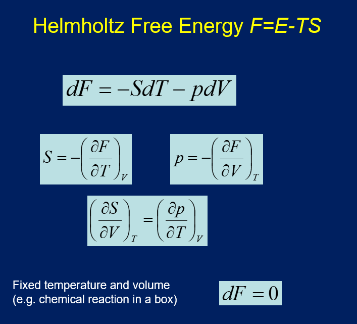 What is the equation and an application of Helmholtz free energy?