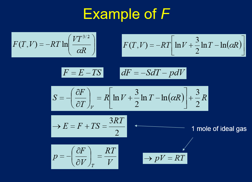 Using this equation and the standard Free Helmholtz energy equation, find the internal energy of an ideal gas and the ideal gas law.
