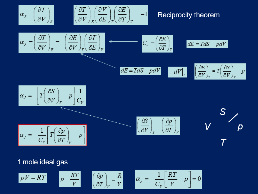 Note: The equation is the same for the Joule coefficient, but dp and dV have swapped positions.
