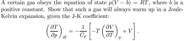 Apply same process to get the alternate form of the Joule coeff. eq. Then plug in Van der Waal eq.
