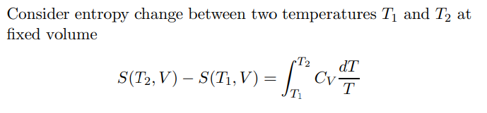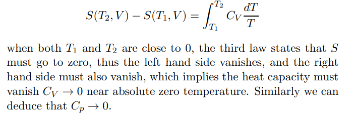 Using the equation on the RHS what happens to heat capacities as the temperatures approach 0 kelvin?