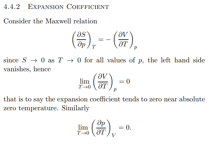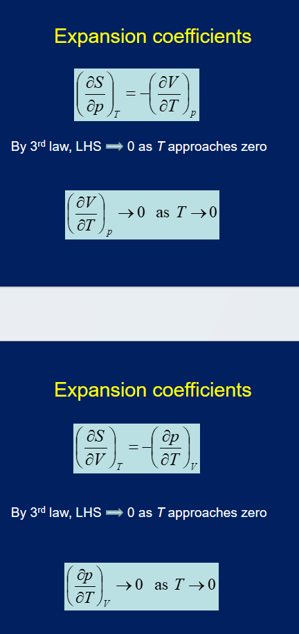 Expansion coefficients approach 0 as T approaches 0, as dS = 0 for approaching 0.