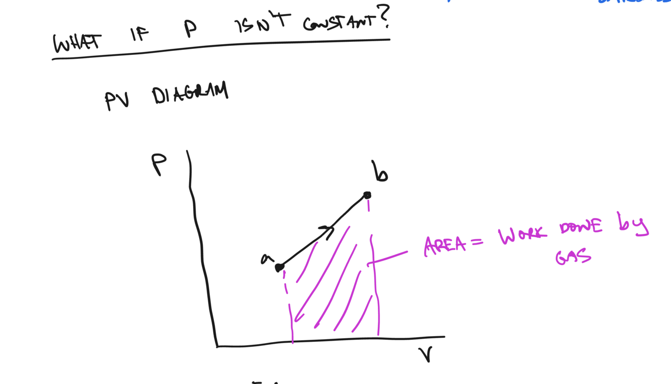diagram if pressure isnt constant can find work done by gas for area under the curve from a to b** we can find the work done by the gas in that process*