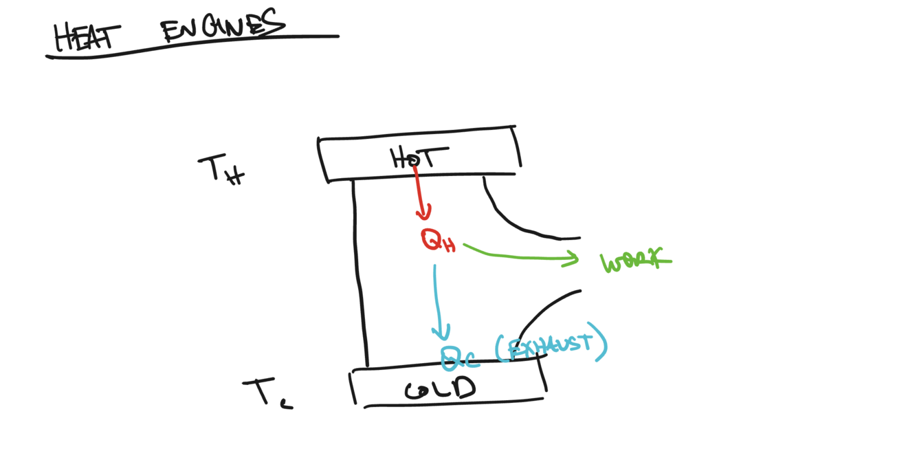 can burn gas and make stuff hot, heat energy can use to turn into mechanical work to make car go* but importantly some of that heat is lost, can’t fully stop the flow some of that heat will make its way to teh cold place and become exhaust*