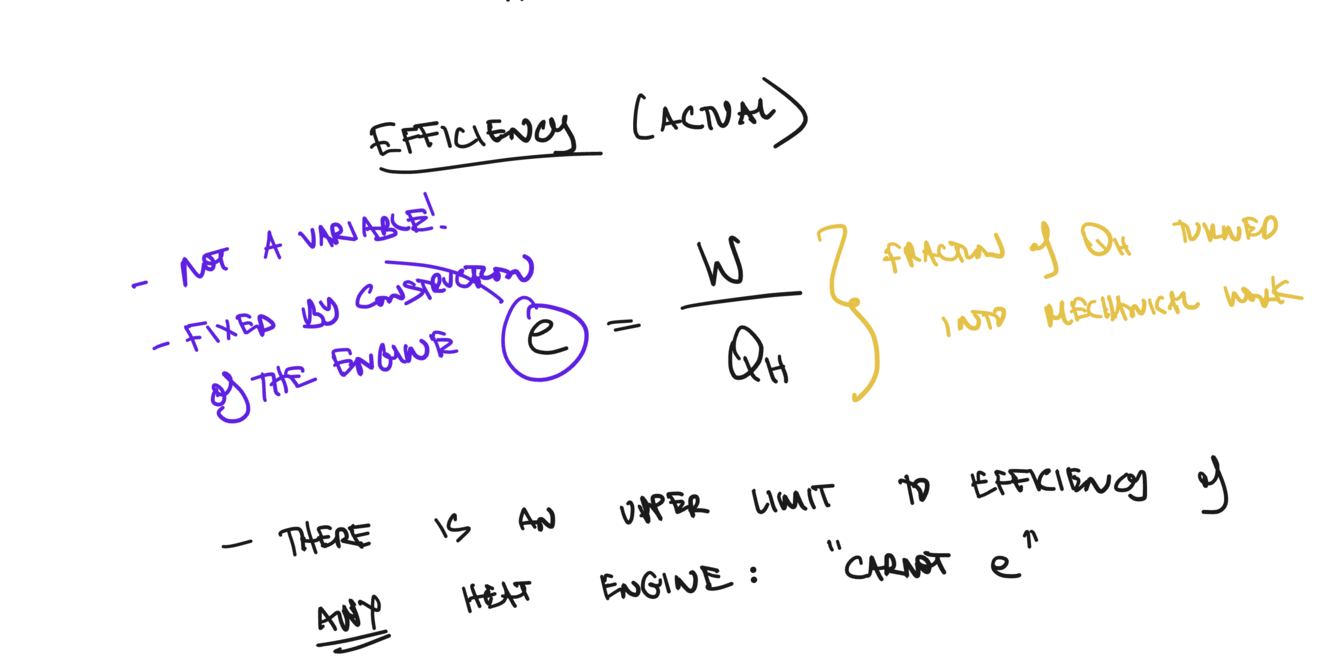 turns out upper limit to efficiency of any engine, even if in magical physic land no friction, no heat lost everything is perfect all of thsoe completely ridiculous assumptions we make when do physics problems could still not get efficiency of 100% of heat engine