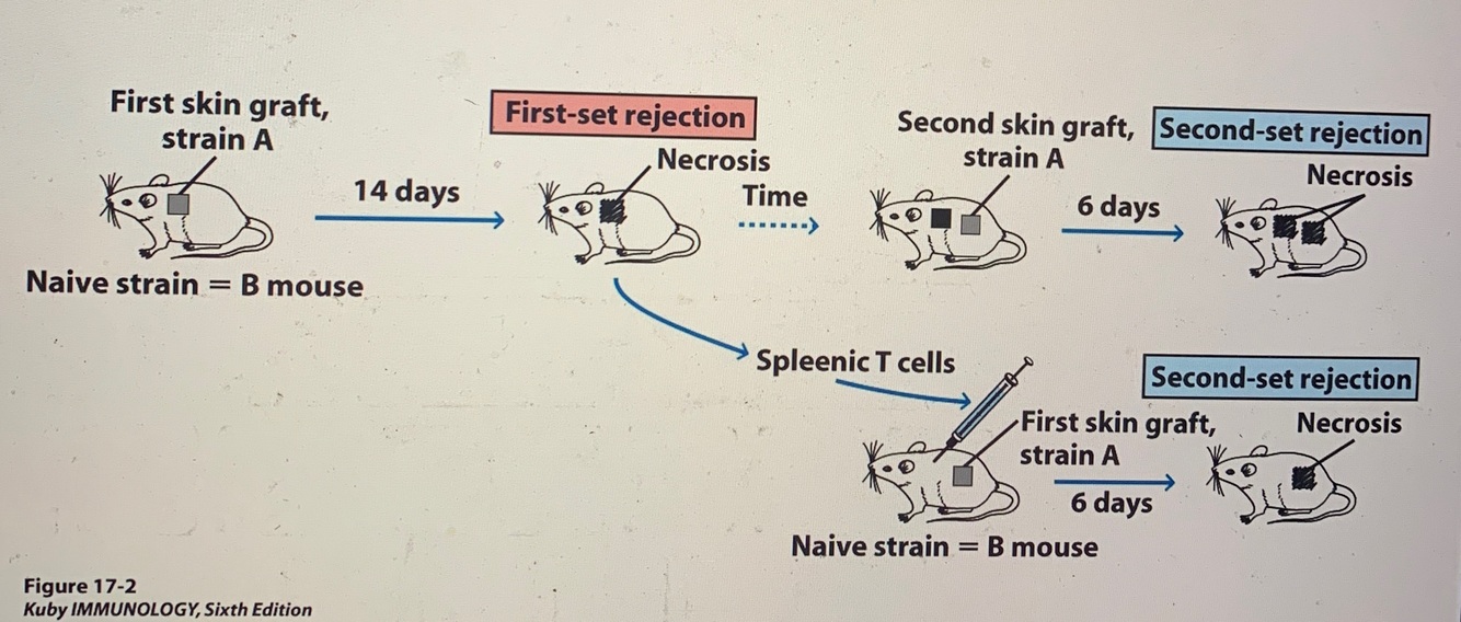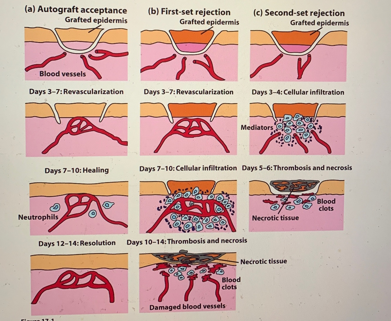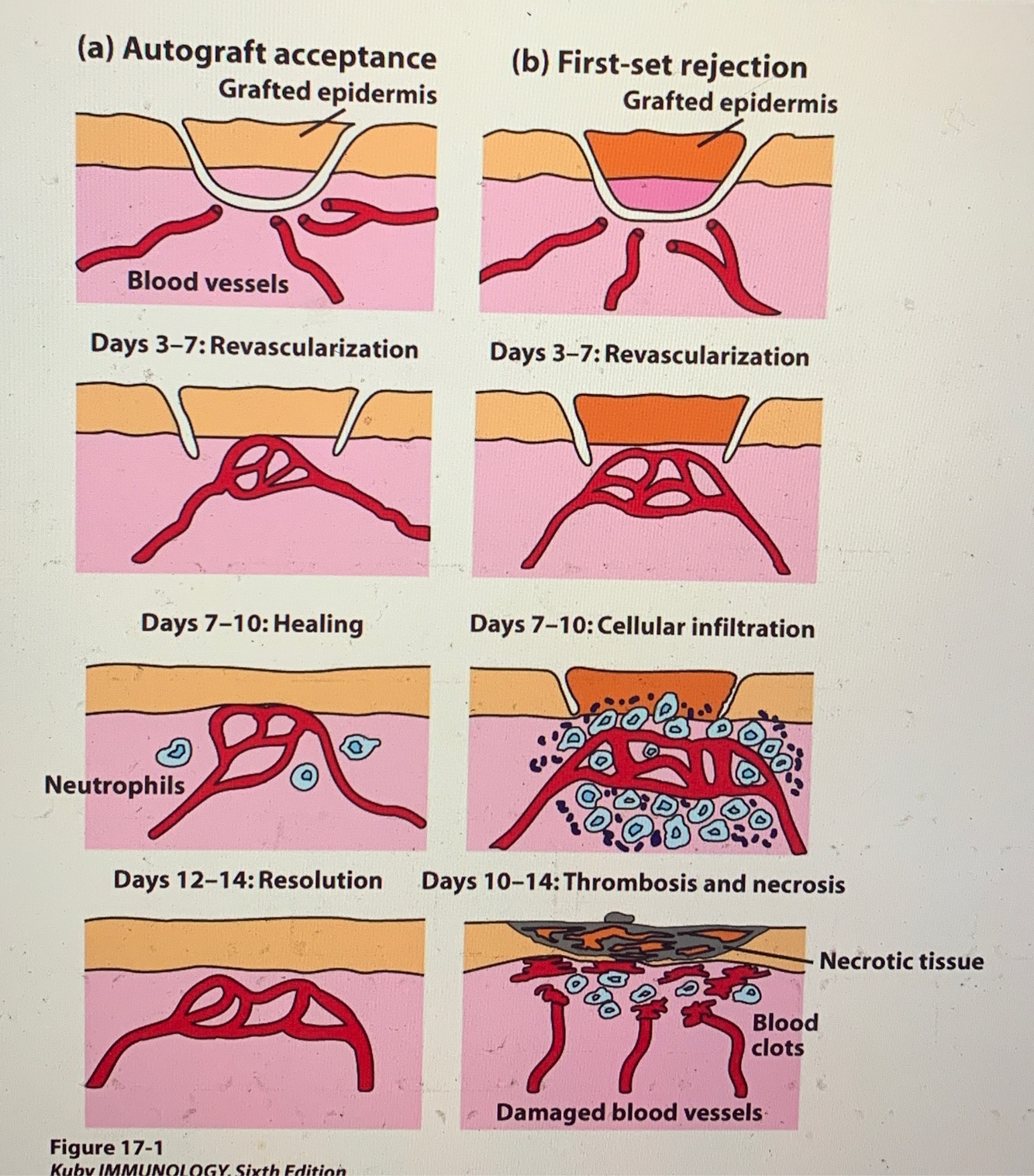 Une greffe de peau sera généralement rejetée très rapidement (rejet hyper-aigu) …plus rapidement qu’une allogreffe chez la souris (rejet aigu) .