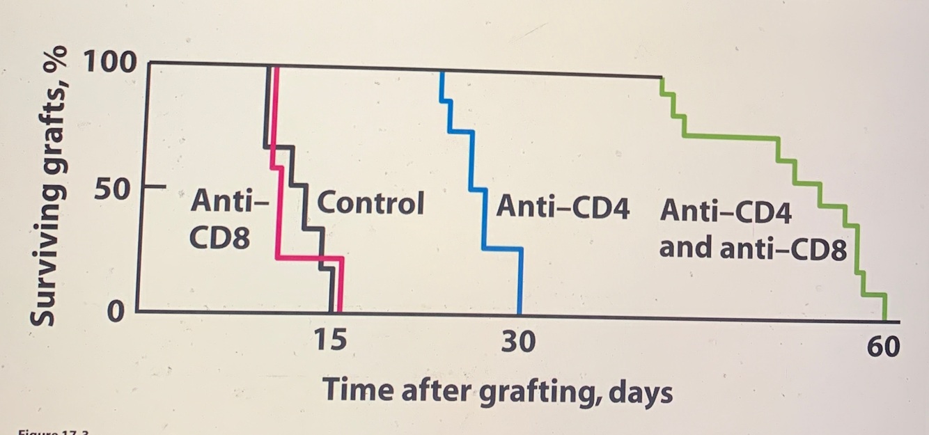 • removal of both CD4 + and CD8 + T cells resulted in long-term survival (up to 60 days) of the allografts